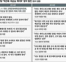 2016/11 썸네일형 리스트형 수년간 ‘최순실 호위무사’였던 새누리 수년간 ‘최순실 호위무사’였던 새누리 의혹 때마다 벌떼같이 감싸기 국회 증인채택 가로막고 의혹 제기에 무작정 “흑색선전” 결국 막다른 골목에 몰려 [한겨레] 김진철 기자 | 등록 : 2016-11-01 21:07 | 수정 : 2016-11-02 00:24 “체육·문화 분야의 많은 사람들이 예산이 부족하다고 하니 전경련이 나서서 돈을 걷었다고 들었다.”(이정현 새누리당 대표, 9월 28일) “야당이 무차별적 국정 흔들기, 정부 흔들기, 근거 없는 폭로로 일관하고 있다”(정진석 원내대표, 10월 4일) 새누리당 이정현 대표와 정진석 원내대표는 불과 한 달여 전까지만 해도, ‘박근혜·최순실 게이트’를 열어젖힌 미르·케이(K)스포츠재단 의혹 제기를 이처럼 방어·변호했다. 두 대표뿐 아니라 새누리당 여러 의원은 .. 더보기 “영남대 땅 몰래 판 돈이 최순실 재산 씨앗이에요” “영남대 땅 몰래 판 돈이 최순실 재산 씨앗이에요” 영남대 전신 대구대 설립자 손자 최염 [한겨레] 글·사진 오승훈 기자 | 등록 : 2016-11-06 09:29 | 수정 : 2016-11-06 09:38 ▶ 징치(懲治)되지 않은 비리는 반복됩니다. 1988년 최태민 아들이 벌인 비리가 2016년 최태민 손녀의 비리로 부활했습니다. 박정희 정권이 반강제로 상납받은 영남대에서 ‘박근혜 그림자’인 최태민의 의붓아들 조순제는 부정입학과 법인 재산 팔아치우기 등 비리를 주도했다고 알려져 있습니다. 지금 최태민의 손녀 정유라는 이화여대 특혜 입학, 학사과정에서 각종 특혜를 받았다는 의혹을 사고 있습니다. 30여 년 전 마치 지금의 최순실 사태를 예고한 듯한 최태민 일가의 영남대 사학 비리를 취재했습니다. “지금.. 더보기 최순실, 정윤회 12년간 출입국 기록 최순실, 정윤회 12년간 출입국 기록 최순실-정윤회 비선, 아직 10%도 드러나지 않았다 [경향신문] 정용인 기자 | 입력 : 2016.11.05 17:01:01 | 수정 : 2016.11.05 23:35:06 박근혜의 최순실·정윤회 비선(秘線) 정치는 언제부터였을까. 이번 ‘최순실 게이트’가 터진 이후 새롭게 쏟아진 ‘증언’은 아주 오래전부터라는 것이다. 국회의원 박근혜 시절이었던 2000년대 초반, 정윤회와 故 이춘상 보좌관을 포함한 ‘4인방’을 만났던 출입기자는 “정윤회 비서실장과 4인방의 특징을 말한다면 과묵하다는 것이었다. 다른 의원실, 심지어 당시 한나라당 의원 보좌관들과도 일절 교류가 없었던 것으로 기억한다”고 말한다. 이번 게이트 국면에서 박근혜 의원이 대통령 경선 출마를 선언한 2006년.. 더보기 국정원-법무부-검찰, 여전히 남아있는 ‘우병우 아바타’ 국정원-법무부-검찰, 여전히 남아있는 ‘우병우 아바타’ 권력기관 핵심 요직마다 박혀 있는 또 다른 ‘우병우’들 [민중의소리] 최명규 기자 | 발행 : 2016-11-03 20:16:27 | 수정 : 2016-11-03 20:36:13 각종 비위 의혹을 받던 우병우(사법연수원 19기) 전 청와대 민정수석비서관이 '박근혜-최순실 게이트' 파문에 따른 청와대 인사개편 과정에서 물러났다. 하지만 소위 '우병우 아바타'로 꼽히는 인물들은 국가정보원과 법무부, 검찰, 경찰 등 권력기관의 요직에 그대로 남아 있다. 청와대 민정수석은 주요 공직자 인사 검증과 사정기관을 총괄하는 막강한 권한을 가지고 있다. 특히 우병우 전 수석은 박근혜의 핵심 실세 중의 실세로 꼽히는 인물이었다. 이 때문에 권력기관 요직 인사 때마다 .. 더보기 박근혜, 최태민을 찬양하고 묵인하더니 뒤늦게 선 긋는 개신교 보수세력 박근혜, 최태민을 찬양하고 묵인하더니 뒤늦게 선 긋는 개신교 보수세력 [민중의소리] 권종술 기자 | 발행 : 2016-11-05 11:13:42 | 수정 : 2016-11-05 11:13:42 박근혜와 최순실을 둘러싼 국정농단 사건이 일파만파로 번져가고 있다. 국민들의 분노는 높아지고, 박근혜 지지율은 5%로 추락했다. 박근혜 하야를 촉구하는 목소리가 거리에 넘치고 있다. 사태가 심각해지자 박근혜의 우군으로 여겨지던 단체들조차 비판의 목소리를 내고 있다. 그 가운데엔 개신교 보수세력도 포함돼 있다. 개신교 보수세력들은 박근혜와 과거부터 인연을 이어왔고, 이번 사건의 발단이라고 할 수 있는 최순실의 아버지인 故 최태민을 향해서도 비판의 목소리를 높이고 있다. 박근혜의 우군이던 보수 개신교의 이례적인 박근혜.. 더보기 이전 1 ··· 3 4 5 6 다음