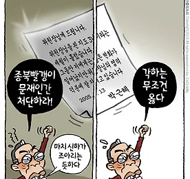 2016/12/20 썸네일형 리스트형 최민의 시사만평 - 교주님이 하면 애국 최민의 시사만평 - 교주님이 하면 애국 [민중의소리] 최민 논설위원·시사만화가 | 발행 : 2016-12-19 20:37:54 | 수정 : 2016-12-19 20:37:54 박근혜가 2005년 김정일에게 보낸 편지를 문재인이 보낸 편지라고 해서 박사모 카페에 올렸더니 "종북빨갱이" "단두대 처형" "재판없이 때려 처 죽일 놈" "북남이란다..비굴한 놈" "또 김정일 재가 받는구나...등신새끼" "북남이라고 하는걸 보면 북한추종세력임이 확실하네요." "엄청 조심스럽게 존경하는 것 같네" "이런게 대통령을 꿈꾼다는게 말이 됩니까?" "마치 신하가 조아리는 듯하네요." 하지만... 문재인이 쓴 글이 아니라 박근혜가 보냈다는 사실이 알려지면서... "박근혜님께서 저따위 편지를 쓰썼다고 보십니까?" "저건 문재.. 더보기 K스포츠 증인 ‘움직이는 손’ 있나 K스포츠 증인 ‘움직이는 손’ 있나 비협조 일관하다 적극 협조…여당 측과 협의 후 돌변 의혹 [경향신문] 윤승민 기자 | 입력 : 2016.12.20 06:00:01 | 수정 : 2016.12.20 14:00:31 K스포츠재단이 정동춘 전 이사장(55), 박헌영 전 과장(40)의 국회 ‘박근혜·최순실 게이트’ 국정조사 특위 청문회 증인 출석 과정에서 처음에는 비협조로 일관하다 갑자기 태도를 바꿔 적극적으로 나섰다는 증언이 나왔다. K스포츠재단이 새누리당 측과 위증을 논의한 후 태도를 바꾼 것이 아니냐는 의혹이 제기된다. 국회 관계자는 19일 “당초 K스포츠재단이 국조특위 4차 청문회에 정 전 이사장, 박 전 과장에 대한 증인 출석 요구에 이틀 이상 협조하지 않다가 지난 7일 두 사람의 출석 가능 의사를 .. 더보기 박근혜-최순실의 안보-종북 프레임은 끝났다 박근혜-최순실의 안보-종북 프레임은 끝났다 [촛불의 제도화를 위한 제언⑥] 달라져야 할 외교·안보 [오마이뉴스] 글: 소준섭, 편집: 김준수 | 16.12.19 21:20 | 최종 업데이트 16.12.19 21:20 참으로 기나긴 고통의 세월이었다. 역사가 과거 유신시절로 돌아간 듯한 어둠의 시대였다. 우리가 이미 획득했다고 믿었던 그 민주주의의 원칙과 틀은 걷잡을 수 없이 무너졌다. 그러나 마침내 시민들은 이 어둠을 촛불로 몰아냈다. 독재자는 자기의 성에 유폐됐고, 우리는 광장에 섰다. 이제 우리의 임무는 무엇인가? 그것은 광장을 불살랐던 촛불의 열기를, 그리고 "모든 권력은 국민으로부터 나온다"는 그 뜨거운 외침을 진정한 민주주의의 제도화로 승화시키는 것이라 믿는다. 광장의 열기가 그저 추상적이고 선.. 더보기 ‘직권남용’ 딱 걸린 우병우…“이번엔 빠져나가기 힘들 것” ‘직권남용’ 딱 걸린 우병우…“이번엔 빠져나가기 힘들 것” 대통령도 수사 관여 권한 없는데…수사 직접 개입 명백히 드러나 해경서버 수색 거부 와중에 전화...수사팀 맞서자 영장 범위 문제삼아 사건 초기 청와대 통화내역 담겨...우, 정부책임론 우려 끝까지 막아 ‘해경 123정장 업무상 과실치사'도 중간에 사람 넣어 ‘적용 불가’ 간섭 세월호 수사과정 압력 증언 잇따라 [한겨레] 강희철 김정필 기자 | 등록 : 2016-12-20 07:04 | 수정 : 2016-12-20 08:26 우병우 전 청와대 민정수석이 민정비서관이던 2014년 6월 세월호 수사팀에 직접 전화를 걸어 해경 상황실 서버 압수수색을 중단하라고 요구한 행위는 형법의 직권남용 권리행사방해죄에 저촉된다. 대통령을 포함해 청와대의 누구도 직접.. 더보기 우병우 “해경 상황실 서버 수색 말라”…세월호 수사팀에 압력 우병우 “해경 상황실 서버 수색 말라”…세월호 수사팀에 압력 2014년 6월 민정비서관 때 직접 전화 ‘전산장비 제외’ 종용 “청와대·해경 통화내역 등 민감”…영장범위 문제삼기도 수사본부장에도 수차례 전화…특검, 직권남용 수사 방침 [한겨레] 김정필 강희철 기자 | 등록 : 2016-12-20 07:04 | 수정 : 2016-12-20 08:16 우병우 전 청와대 민정수석이 민정비서관이던 2014년 6월 검찰의 ‘세월호’ 사건 수사와 관련해 광주지검 수사팀에 직접 전화를 걸어 ‘외압’을 행사한 것으로 확인됐다. ‘박근혜-최순실 게이트’를 수사 중인 박영수 특별검사팀도 이런 내용을 파악하고 우 전 수석을 ‘직권남용 권리행사방해’ 혐의로 수사할 방침이라고 밝혔다. 검찰 및 특검의 여러 관계자는 19일 에 우.. 더보기 최순실 청문회, 놓치지 말아야 할 7가지 최순실 청문회, 놓치지 말아야 할 7가지 바쁜 당신을 위한 이슈 5분 정리 [한겨레] 정유경 기자 | 등록 : 2016-12-19 15:01 | 수정 : 2016-12-19 17:33 전 국민이 최순실을 이야기하는 시대다. 2명 이상 모이면 최순실 이야기로 흘러간다. 종일 청문회를 다 보고 있을 수 없는 당신을 위해 모았다. 지금 사람들이 이야기하고 있는 이슈의 세세한 이면들이다. 1. 김영재 의원이 이름을 바꾼 이유는? 김영재는 이영자 지방흡입 폭로한 진료의였다 최순실씨 주변 사람들은 유난히 개명이 잦다. 청와대의 ‘비선의사’ 김영재 원장도 14일 3차 청문회에서 개명 의혹이 제기됐다. 본명 김영복. 김영복이던 시절 ‘이영자 지방흡입 의료기록 공개 사건’(2001년) 당사자였던 것도 청문회에서 드러났다.. 더보기 이전 1 다음