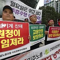 ▲ 민주노총 서비스연맹 전국요양서비스노조 조합원들이 지난해 7월 경기도 성남 ‘세비앙실버홈’ 앞에서 일방적인 요양원 폐업에 반대하는 집회를 열고 있다. 요양서비스노조 제공